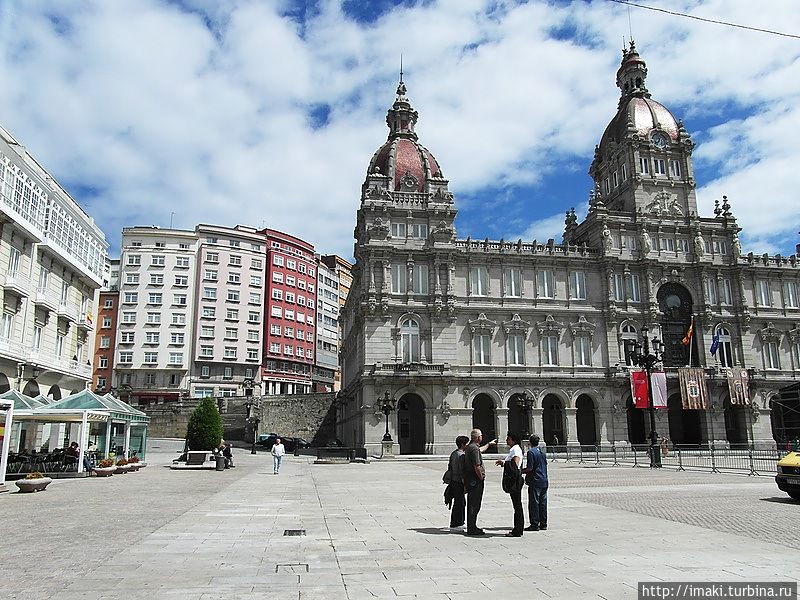 Величественная площадь Пласа-де-Мария-Пита окружена кафе и окружена зданием Аюнтамиенто начала 20-го века и памятником героине, в честь которой названа площадь – она изображена здесь отражение 1589Английские оккупанты в струящемся платье.