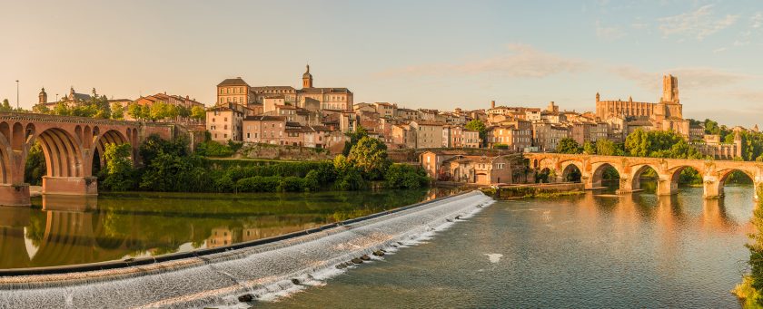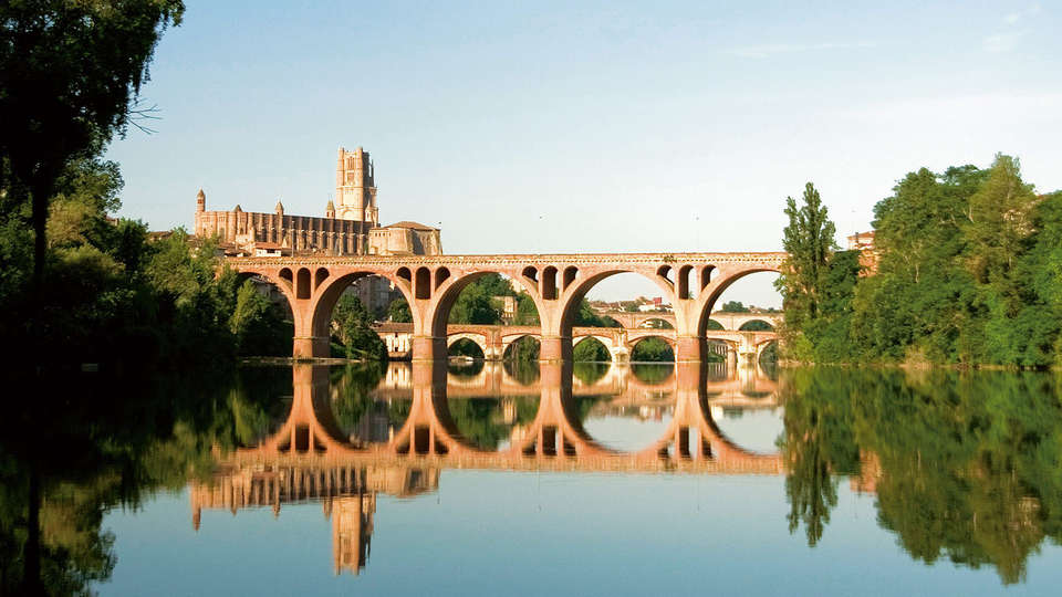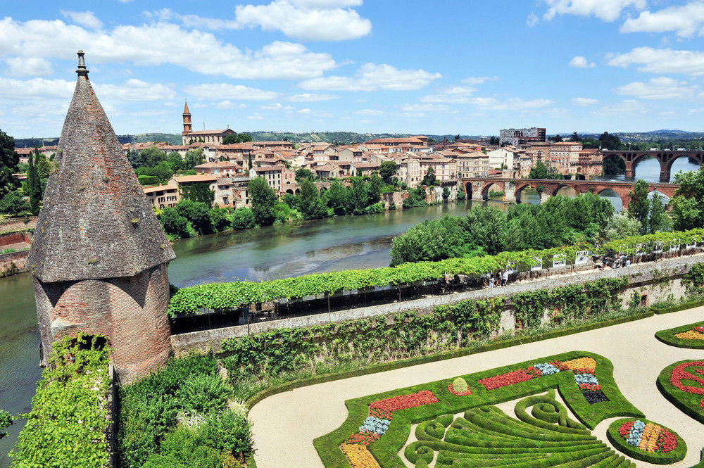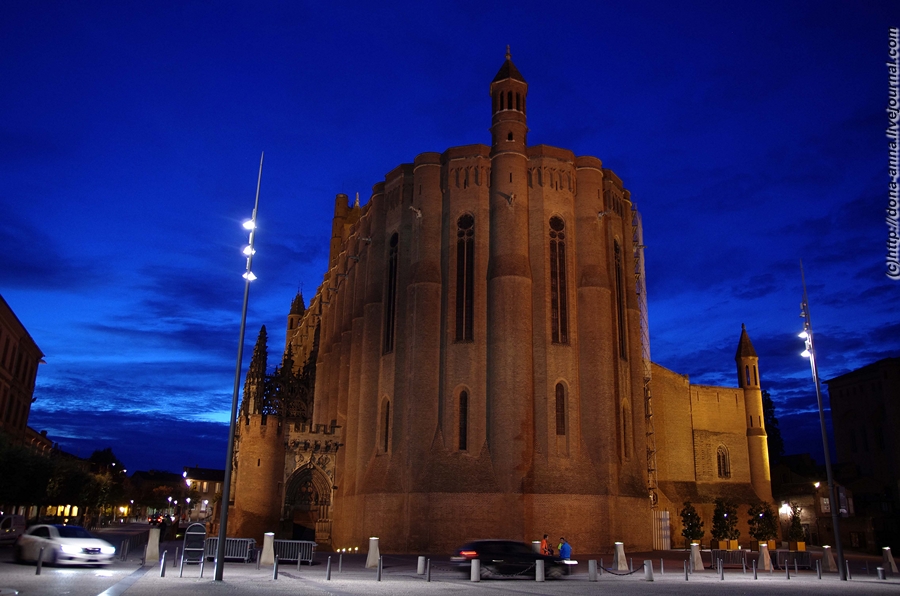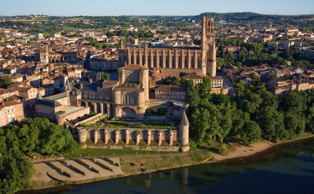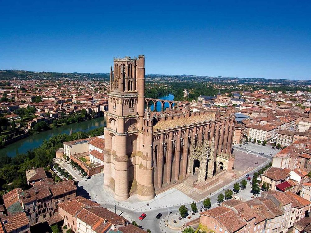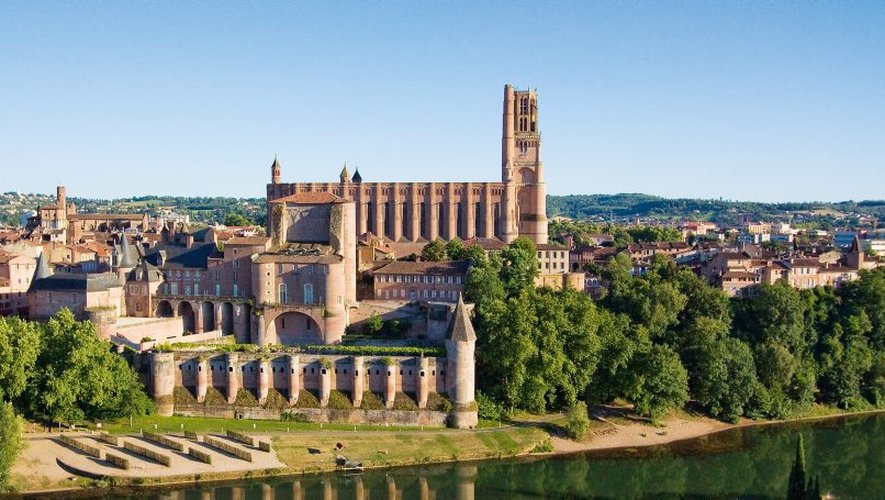 С правого берега реки Tarn открывается великолепный вид на Альби. Епископский город смог сохранить свой исторический облик, многовековой ансамбль, ограниченный «Pont-vieux«, прибрежными укреплениями, крепостью дворца, цветочными террасами и великолепным кафедральным собором. С июля 31, 2010 г входящий в список памятников Всемирного наследия ЮНЕСКО, это одно из крупнейших кирпичных зданий в мире.
