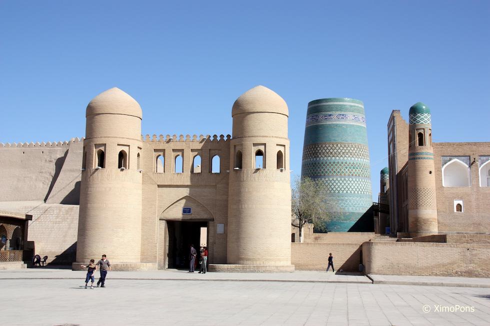 На заметку: находясь у статуи, мы заметили странное зрелище среди этих древних зданий — припаркованный ярко-красный двухэтажный автобус hop-on hop-off, забрызганный рекламой экскурсий по Бухаре.