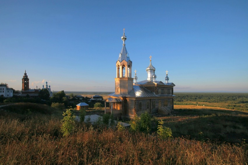 Рядом построена деревянная церковь Ильи Пророка. А на краю холма воспроизведена одна из башен крепости – Спасская.