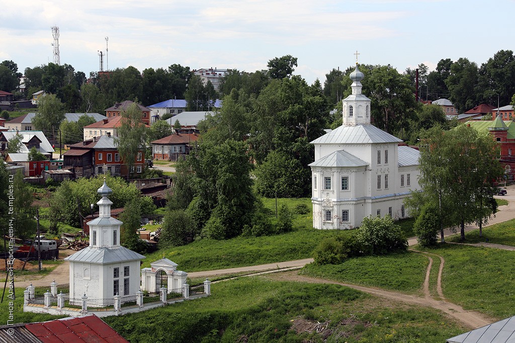 Высокий берег Колвы рассечен глубокими оврагами, которые образуют несколько высоких мысов. На них стоят церкви Чердыни.