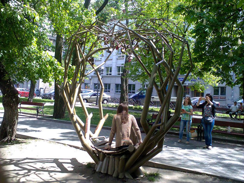 Еще одна достопримечательность на Валу, возле которой сложно пройти мимо — это памятник молодому Тарасу Шевченко, где каждый обязан посидеть с ним на скамейке