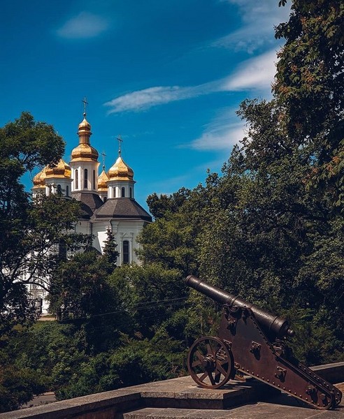 Одна из самых главных туристических «фишек» Чернигова — это 12 чугунных пушек. Откуда эти пушки? Что ж, не зря Чернигов город легенд и туристу могут рассказать несколько версий, а в итоге никто так и не знает достоверно как они здесь появились, но то, что они стали туристической изюминкой города это точно. Люди как только не залазят на эти пушки, чтобы сделать эпичные фото. Вот такое развлечение 🙂