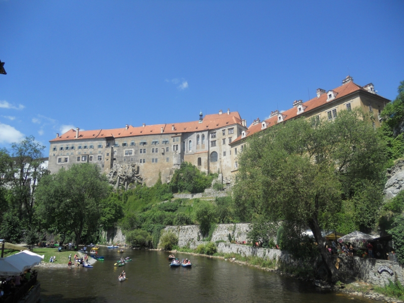 Исследование Крумлова было решено начать с осмотра Крумловского замка, который, кстати, является вторым по площади замком в Чехии после Пражского града. Стены замка на этом фото напоминают мне выточенные в скале стены немецкой крепости Кёнигштайн.