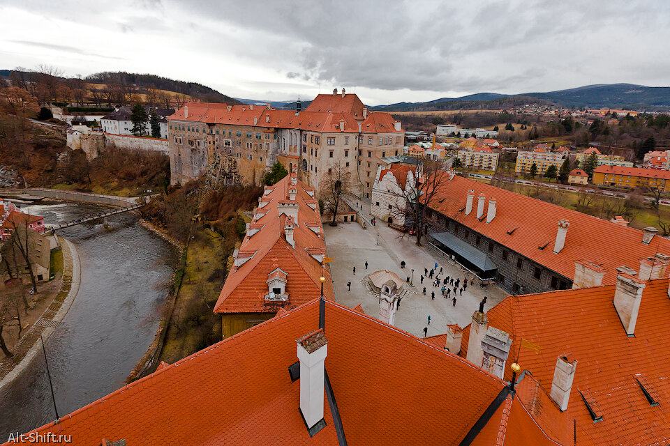 Наградой за ваши усилия станут сказочные виды, открывающиеся на замковый комплекс, центр Крумлова и близлежащие горные массивы.