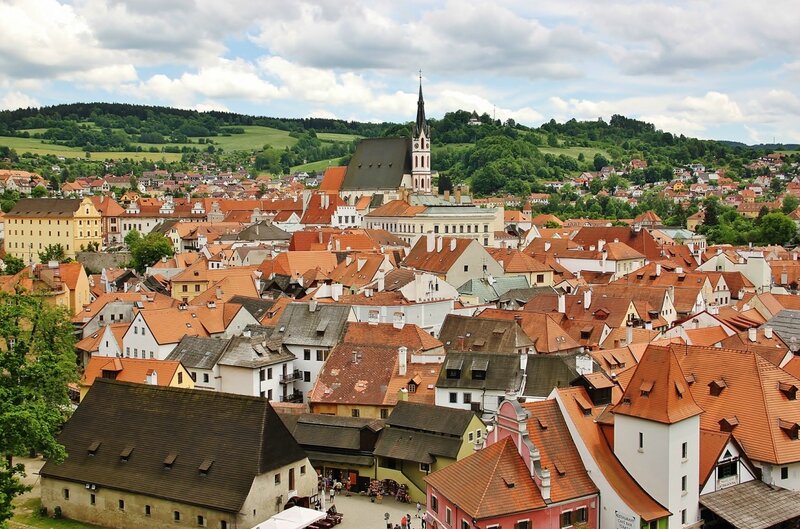 В центре следующего фото красуется Костёл Святого Вита, который является одной из основных городских достопримечательностей наравне с Крумловским замком.