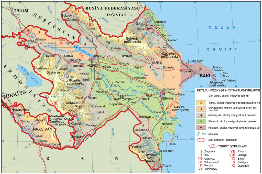 Азербайджан является владельцем береговой линии протяжённостью 955 км.