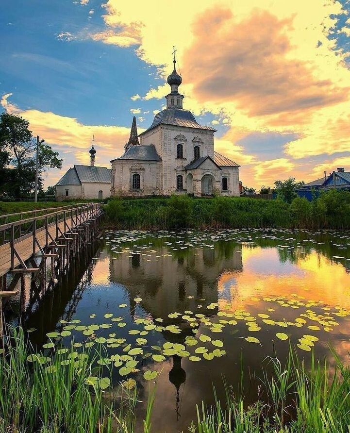 Церковь Покрова на Нерли — белокаменный храм, выдающийся памятник зодчества владимиро-суздальской школы. Был построен в 1165 г. князем Андреем Боголюбским в память о погибшем сыне Изяславе. Церковь освящена в честь праздника Покрова Богородицы, установленного на Руси в середине XII века по инициативе Андрея Боголюбского. Униаьная особенность — построена на рукотворном холме. Обычный фундамент был продолжен основанием стен, которые были засыпаны глинистым грунтом насыпного холма, облицованного белым камнем. Подобная технология позволяла противостоять подъёму воды при разливах реки. Стены церкви строго вертикальны, но благодаря исключительно удачно найденным пропорциям они выглядят наклоненными внутрь, чем достигается иллюзия большей высоты сооружения. Стены церкви украшены резными рельефами. Церковь является объектом Всемирного наследия ЮНЕСКО.