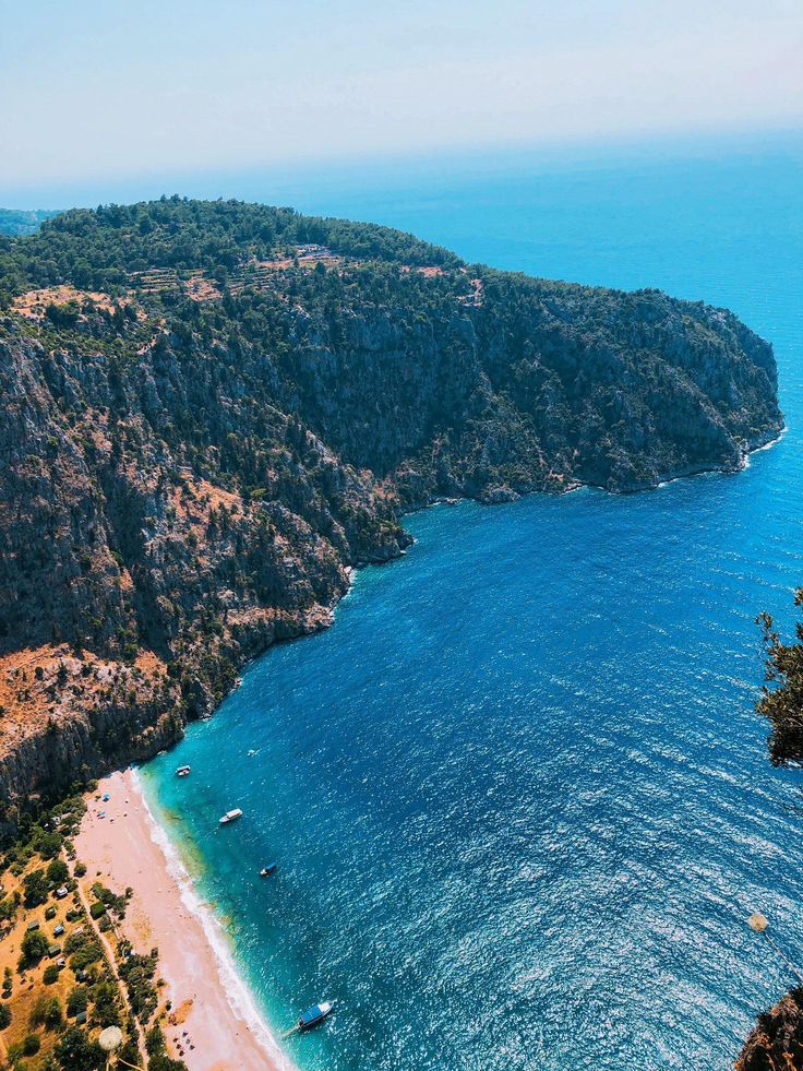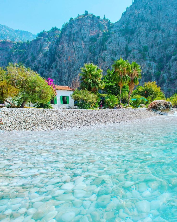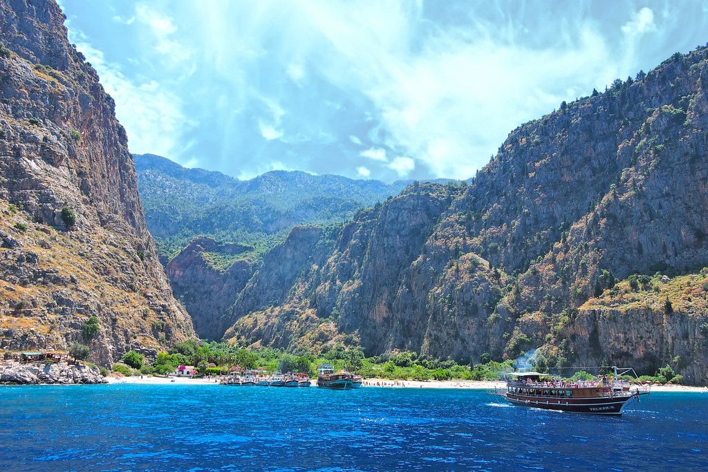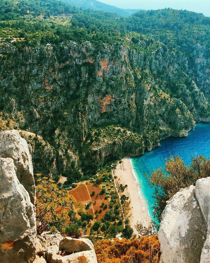 К югу от Олюдениза есть пляж, который практически недоступен по суше, так как он находится в конце каньона со скалистыми стенами, возвышающимися на 350 метров.
