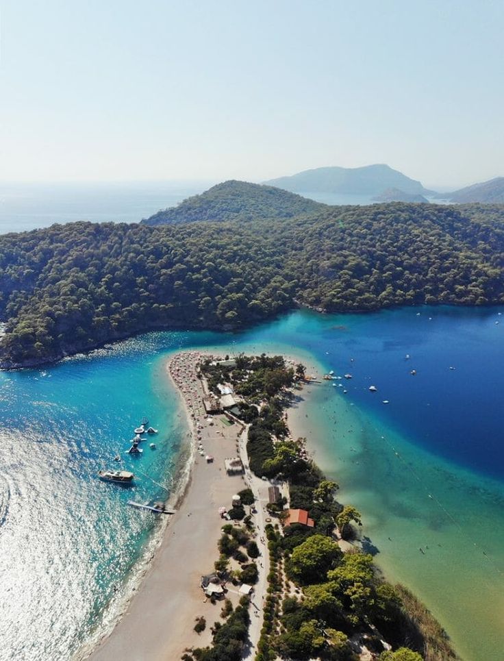Не знаете, что посмотреть в Фетхие помимо древних руин, отправляйтесь в курортный поселок Олюдениз. Здесь, в 15 километрах от Фетхие находится самый известный пляж Турции. Спокойная бирюзовая вода, с белым песчаным пляжем, защищенным от моря, окаймленным густым сосновым лесом, создает невероятную красоту. Именно поэтому люди стекаются сюда на протяжении нескольких лет.