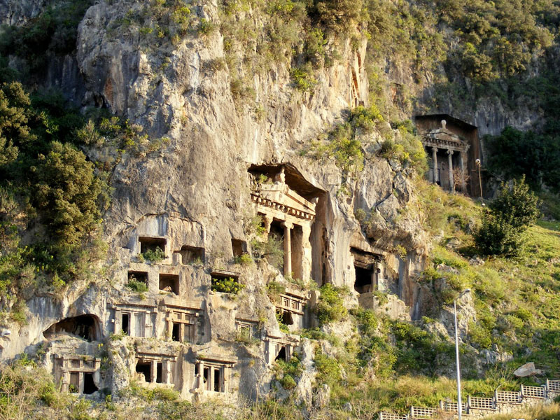 Там вы можете пройти по крутой тропинке вдоль основания обрыва, чтобы получше рассмотреть ликийские гробницы.