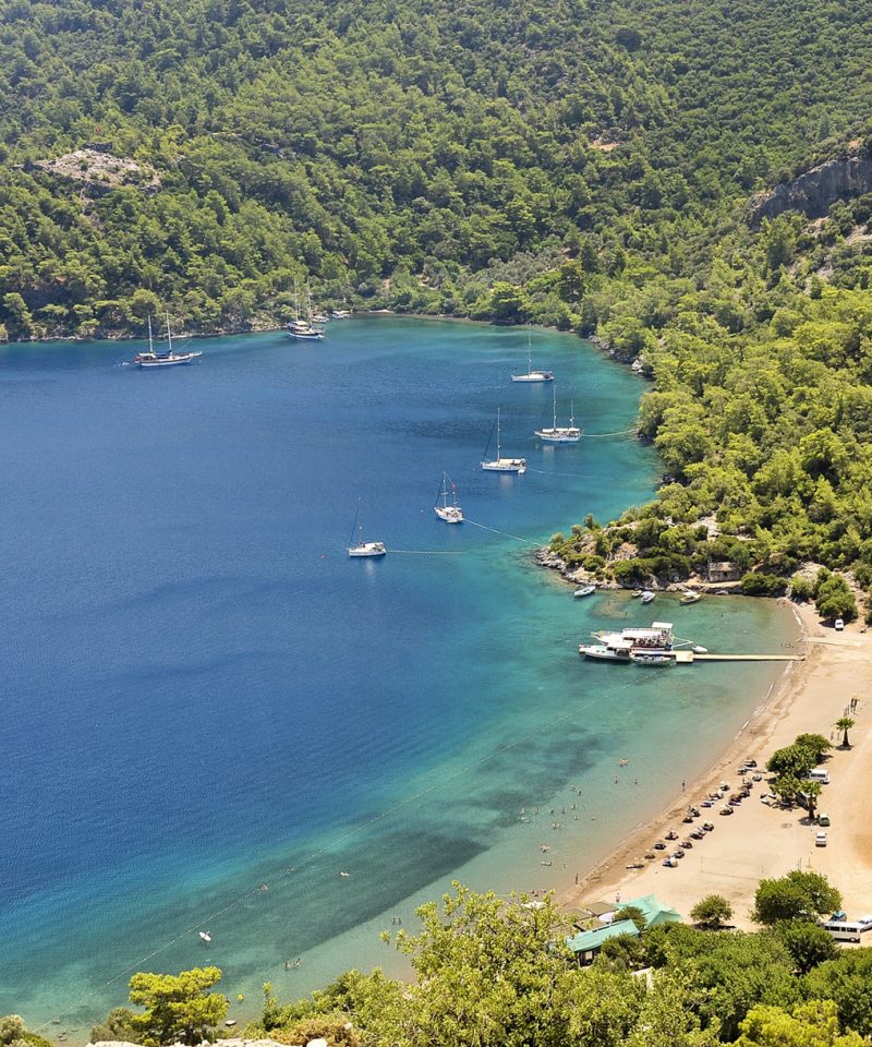 Все время открываются особенные виды на залив Фетхие или на запад, на небольшой, покрытый лесом полуостров, защищающий гавань.