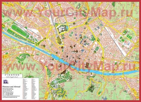 Карты Флоренции пользуются у туристов популярностью, так как на них отмечено большинство самых известных достопримечательностей, включая музеи, дворцы, галереи и прочее.