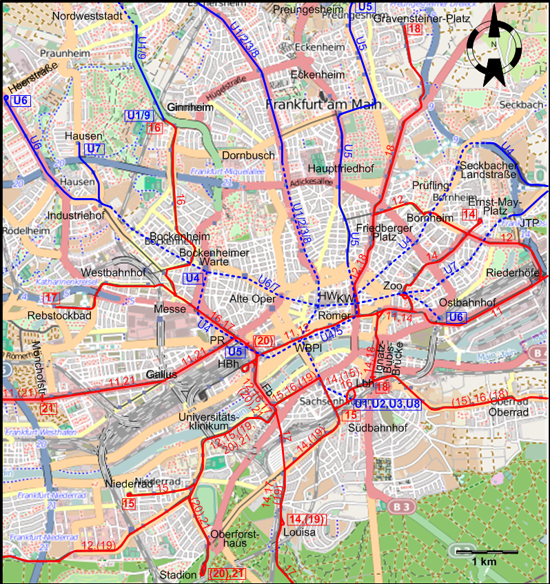 Большие карты Франкфурта-на-Майне для бесплатного скачивания и печати