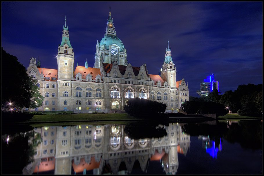 Великолепное здание Новой ратуши Ганновера в театральном историческом стиле было построено в начале XX века. Это расположенное перед искусственным водоемом сооружение с высоким центральным куполом и двумя башнями больше похоже на дворец, чем на здание административного назначения.