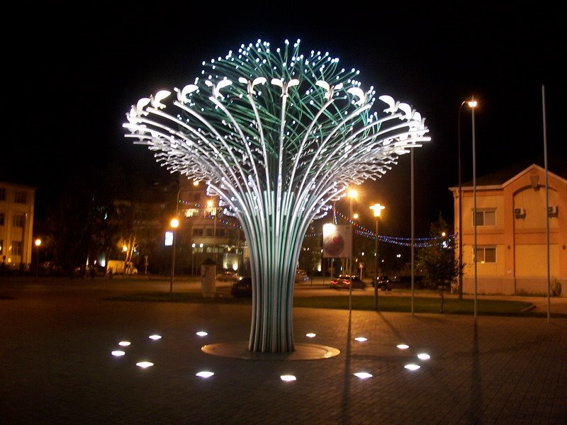 | . | Стела в память о пожарных и спасателях, погибших при исполнении служебного долга Композиция состоит из расколотого на две части обелиска и колокола — символа вечной скорби и памяти. |