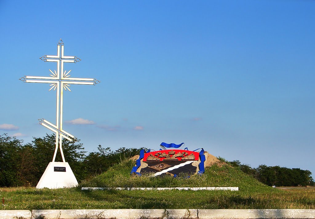 У поселка Винсовхоз установлен необычный памятник в виде арки с колоколом в память о расстрелянных немецкими захватчиками жителях города.