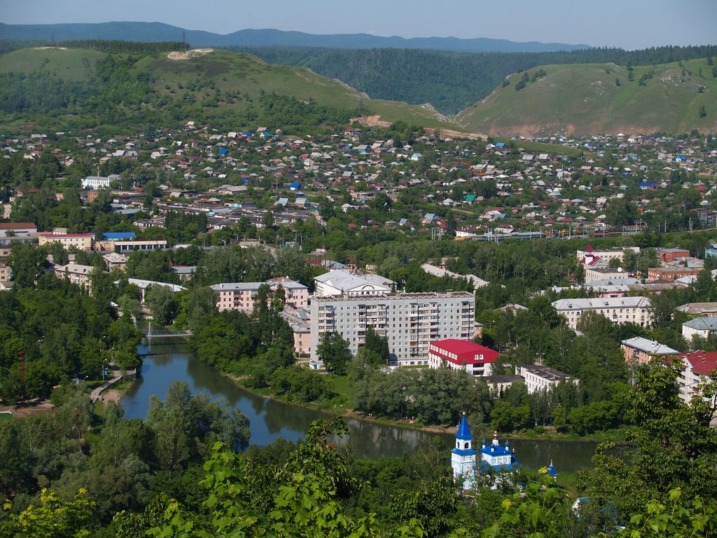 “Про Сим, особенно про Симский пруд, написано немало. Сим известен всем, кто хоть раз проезжал по трассе Уфа-Челябинск. Перед проезжающими открывается удивительная панорама – в низине, окруженной горами, раскинулся как на ладони, город. Ровно в центре возвышается как маяк двухсотметровая труба ТЭЦ, а через весь город вьётся лента реки!
