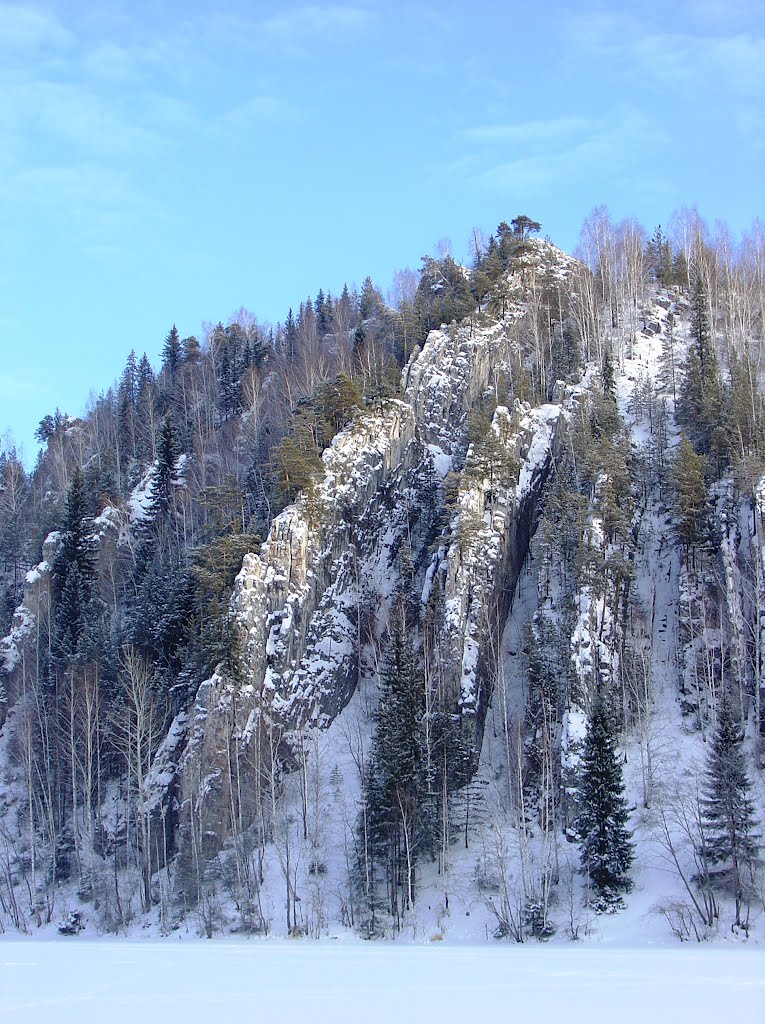 Некоторые называют эту гору «Чертов палец». Действительно, если посмотреть на гору со стороны плотины, скальные выходы очень похожи на ладонь с оттопыренным мизинцем. Даже была легенда про чёрта, который из преисподней пытался вылезти, но не смог, на поверхности только рука его осталась, окаменела. На верхнем «пальце» здорово сидеть и любоваться окрестностями. Отсюда весь город как на ладони.
