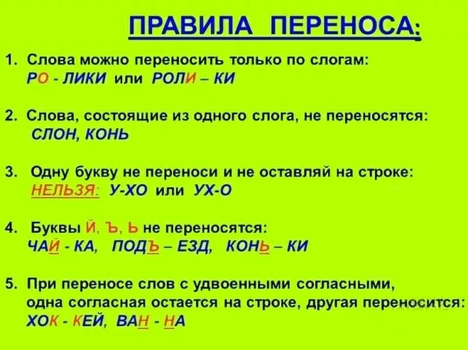 Правила переноса помогают безошибочно осуществлять разделение слов на слоги для записи последующего слога на новой строчке листа.