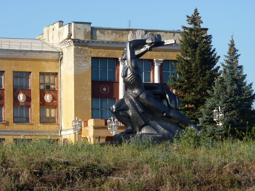 Скульптура, изображающая сталевара, установлена перед стадионом Металлург как дань уважения к работникам металлургического производства и их нелегкому труду.