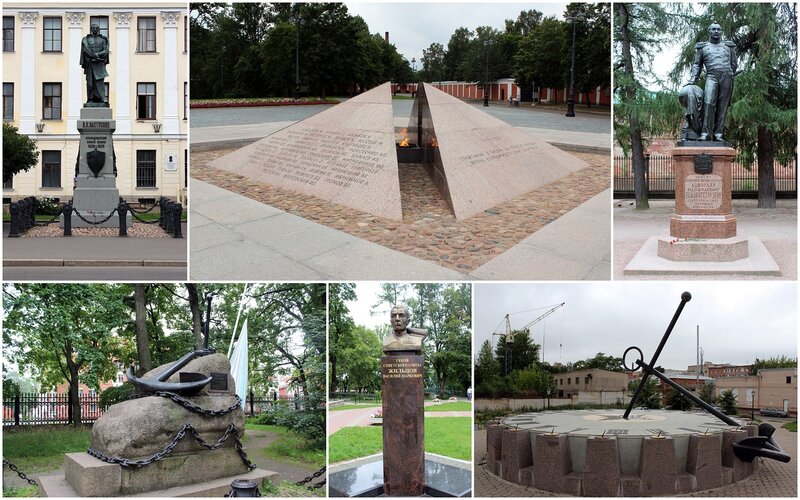 Памятники великим флотоводцам расположены также на Якорной площади. Тот, что воздвигнут в честь Фёдора Ушакова, создан совсем недавно, в 2015 году. Памятнику Макарову, который стоит на массивной скале из гранита, уже более ста лет, его построили в 1913 году.