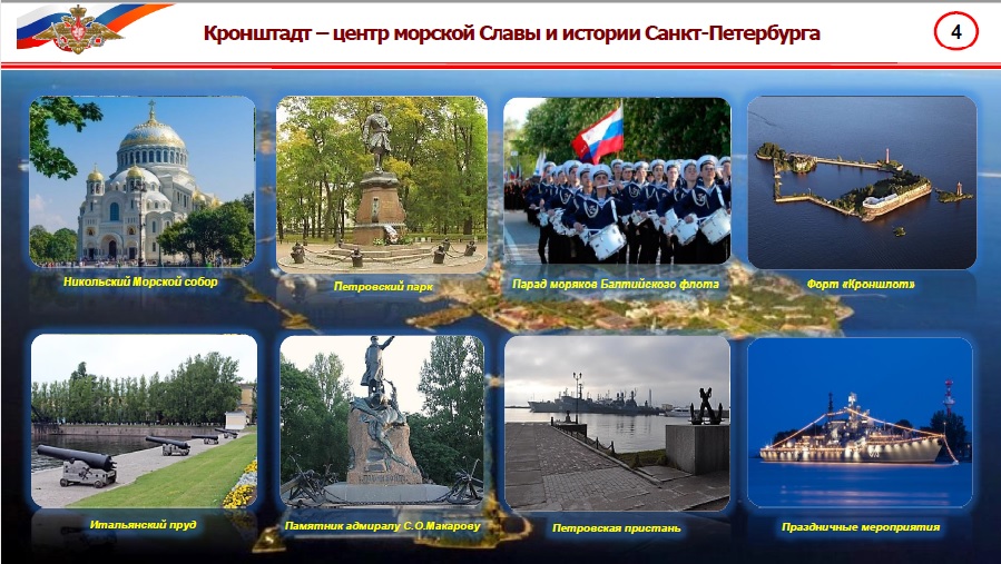 Морской Никольский собор виден из любой точки Финского залива, является последним морским собором времён империи и памятником погибшим флотоводцам. Он заложен в 1903 году по указу императора Николая II в честь 200-летия российского флота.