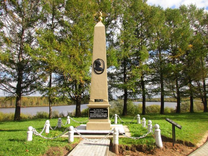 Монумент на берегу реки Свирь был возведен по инициативе купца Сафронова на его личные деньги – на том самом месте, где когда-то располагался походный дом императора. Скромный памятник с отлитой из металла фотографией Петра Великого увенчан двуглавым орлом — символом России.