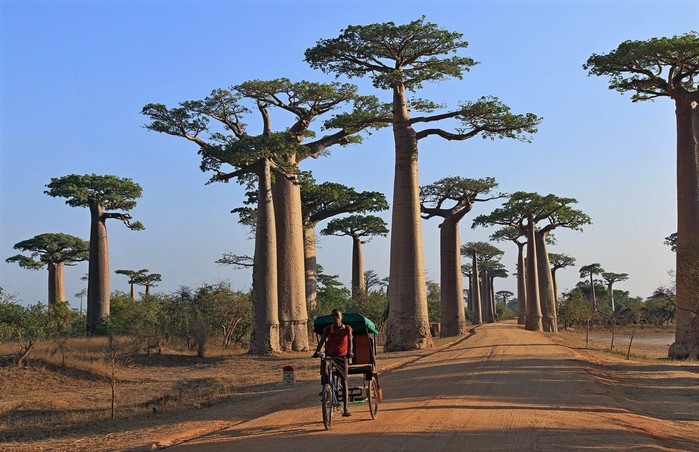 Это не сон: деревья-великаны, подпирающие небо крючковатыми кронами, действительно существуют. Гигантские баобабы растут на западе и юге Мадагаскара — в частности, неподалеку от городка Морондава. Вместо лип и каштанов вдоль пыльной дороги, которую местные называют аллеей, тянутся 30-метровые баобабы грандидье возрастом под тысячу лет. Поблуждайте в утреннем тумане или прокатитесь на квадроциклах в лучах заката среди исполинов во-о-о-т такой ширины.