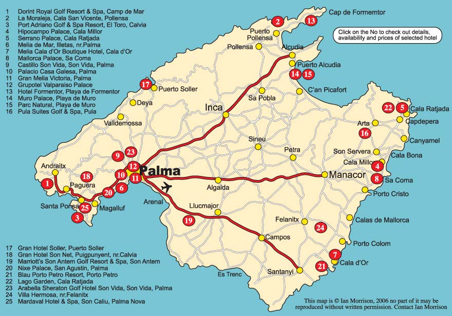 Хотите быстрее определиться, на какой курорт Майорки отправиться, тогда вам сюда — вас ждет карта курортов Майорки с отелями.
