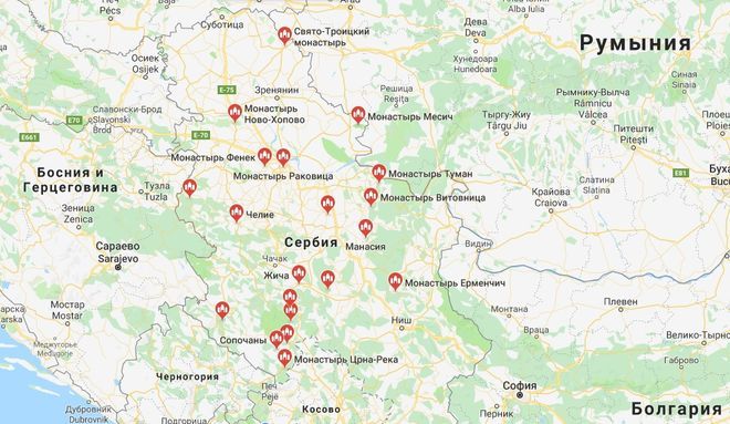 Интерактивная карта Сербии — поиск достопримечательностей