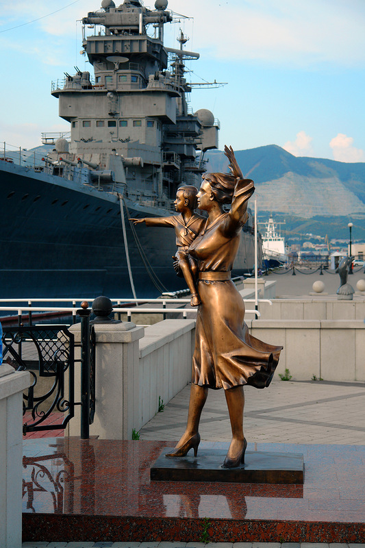 Новороссийск – это город, в котором расположен самый большой порт в России. Поэтому в городе очень много памятников и скульптур, посвященных морской тематике. На набережной рядом с портом в 2010 году был установлен памятник «Жена моряка» или «Морячка», который представляет собой бронзовую скульптуры женщины с ребенком на руках.