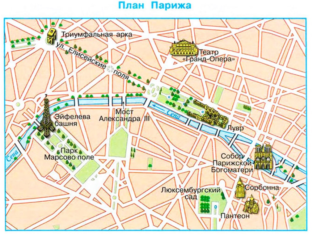 Карта Парижа с достопримечательностями
