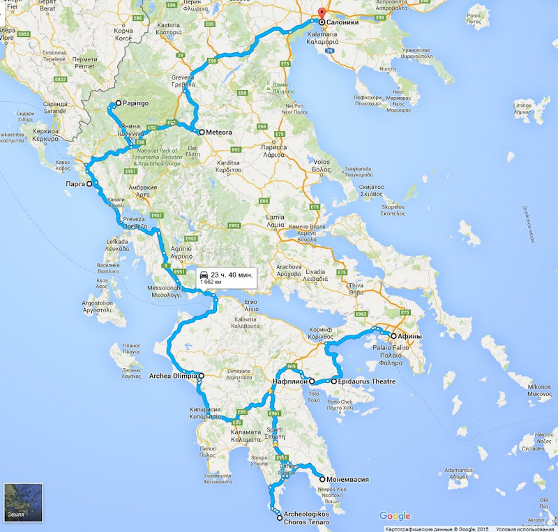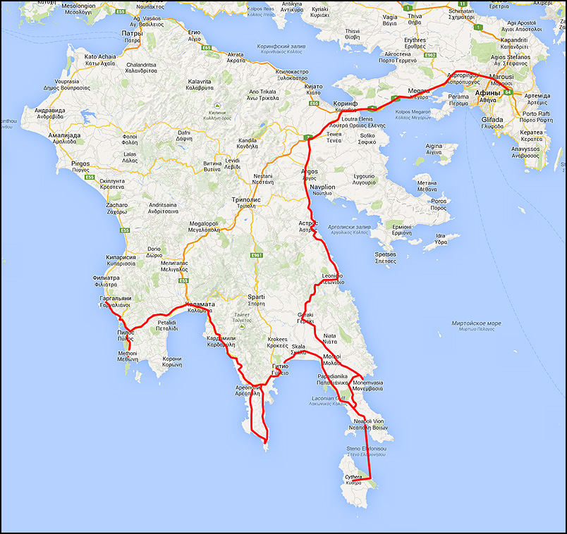 Карта достопримечательностей Пелопоннеса (Греция): что посмотреть на машине