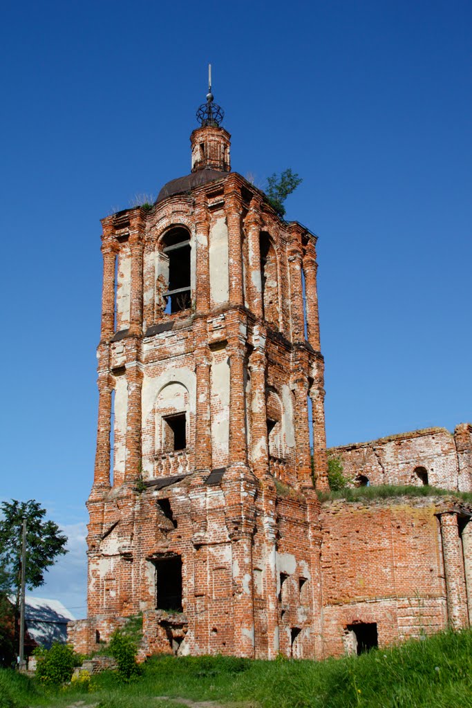 В 1832 году деревянная церковь была заменена кирпичной, также рядом построили колокольню впечатляющих размеров. Со временем церковь расширяли и достраи …