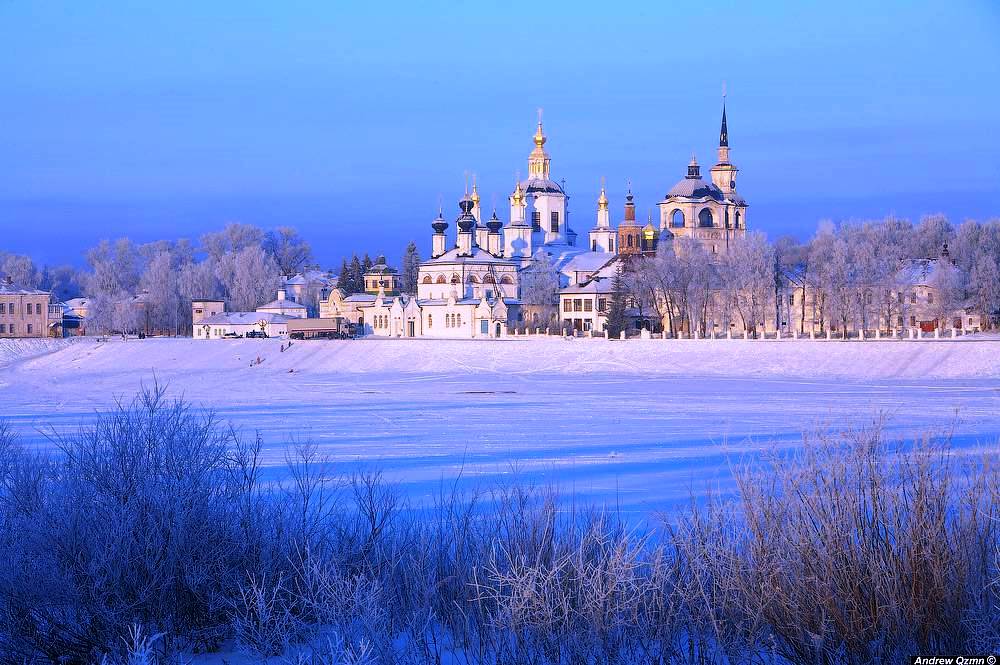 Чем интересен: Стоит в красивом месте — слияние рек Сухоны и Пёсьей Деньги. Основана раньше Москвы, в 1137 году. Историческая застройка, входит в список 41 особо ценных городов России. Тотьма была частью Северо-Двинского водного пути, здесь добывали соль, бывал Петр I, купцы Тотьмы снаряжали экспедиции на Дальний Восток, на Аляску, к берегам Калифорнии, промышляли черную лису, а на вырученные деньги от продажи мехов строили «морские» храмы с витыми картушами.