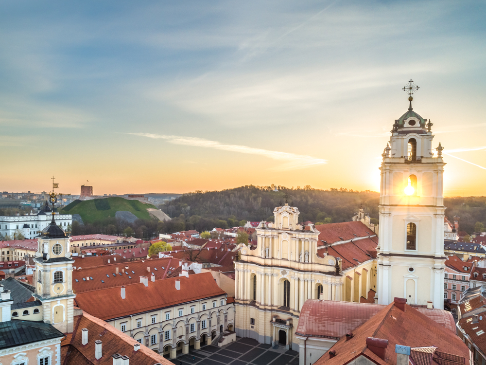 С песчаного, поросшего соснами холма, известного как «Холм Трех Крестов» (Trijų kryžių kalnas), открывается впечатляющий вид на Вильнюс, и это прекрасное место для любования закатом.