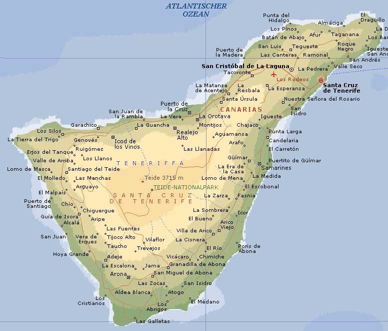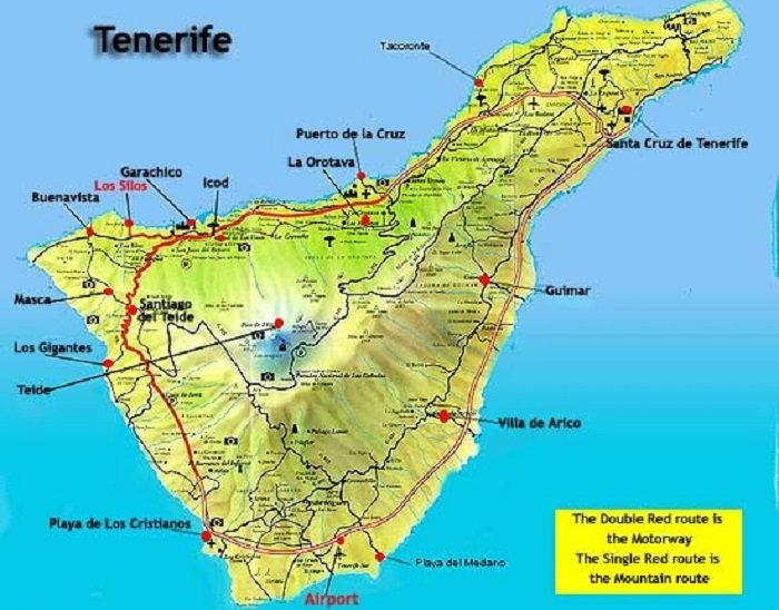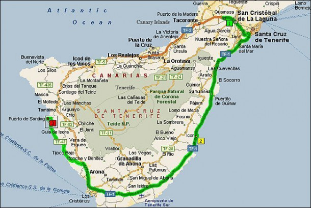 Тенерифе — самый крупный испанский остров архипелага Канарских островов в Атлантическом океане, расположен между островами Ла Гомера и Гран-Канария. Карта Тенерифе даст лучшую возможность познакомиться с географией этого живописного острова вечной весны.