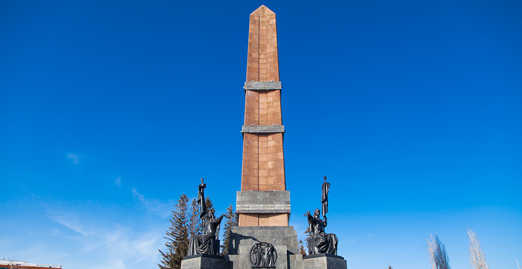 Две надписи: «1557-1957» и «Слава великой братской дружбе русского и башкирского народов!» Памятник расположен на пересечении Сочинской и Посадской улиц.