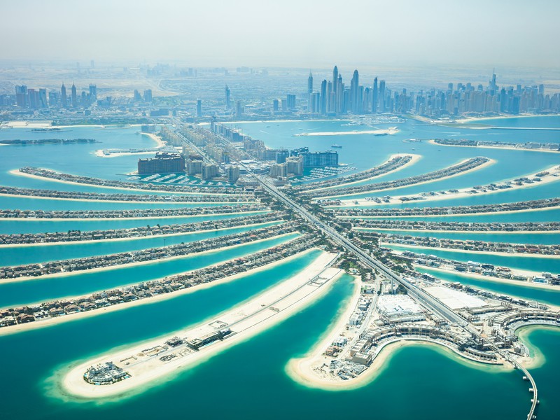Что интересного посмотреть в Дубае? В эмиратах много насыпных искусственных островов, но, самый известный и популярный – это рукотворный остров Пальма Джумейра по форме напоминающий финиковую пальму.