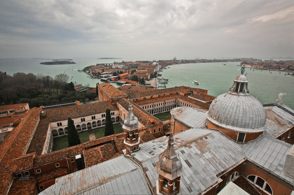 Венеция построена на 118 островах, и на одном стоит старинный собор XVII века. Квадратная кирпичная башня Сан-Джорджо-Маджоре понимается на 60 м. Она выполняет роль колокольни и служит отличной смотровой площадкой, с которой открывается чудесный вид на центральную часть Венеции.