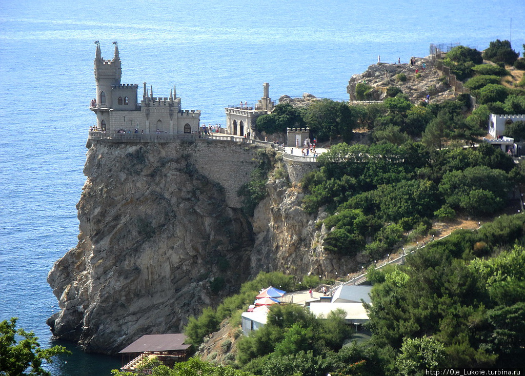 Пожалуй, это визитная карточка не только ялтинского побережья, но и всего полуострова. Здание было построено более века назад. За свою историю оно сменило множество хозяев, да и внешний вид претерпел изменения. Изначально строение на отвесе скалы было деревянной дачей, сменило нескольких хозяев и, лишь оказавшись во владении немецкого нефтяника, обрело эффектный вид каменного готического замка. В Советском Союзе в районе крепости снимали такие культовые кинокартины, как «Десять негритят» (1987г.) и «Человек-амфибия» (1961г.