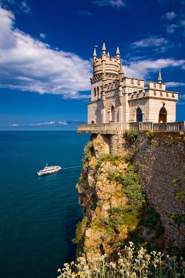 Дворец, находящийся у подножия горы Ай-Петри, сочетает в себе средневековый и мавританский стили.