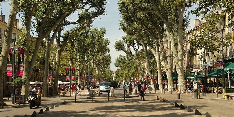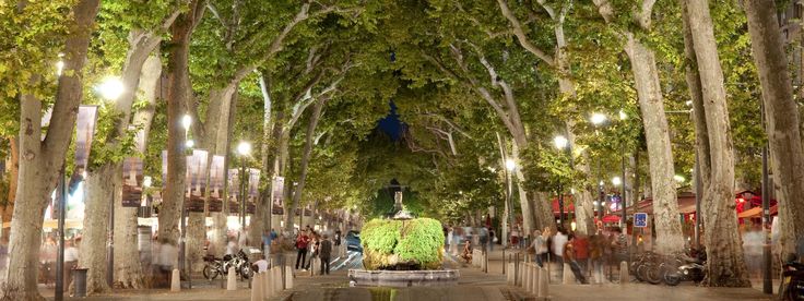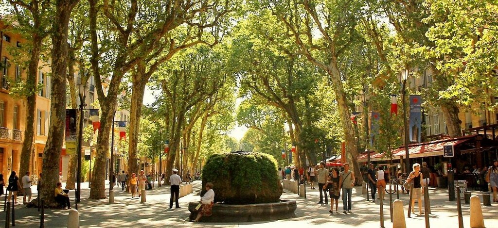 Ни один городской пейзаж лучше не олицетворяет самый изящный город Прованса, чем эта 440-метровая улица с фонтанами, усеянная отелями эпохи Возрождения (частными особняками) и увенчанная летним периодом крыша из лиственных платанов.