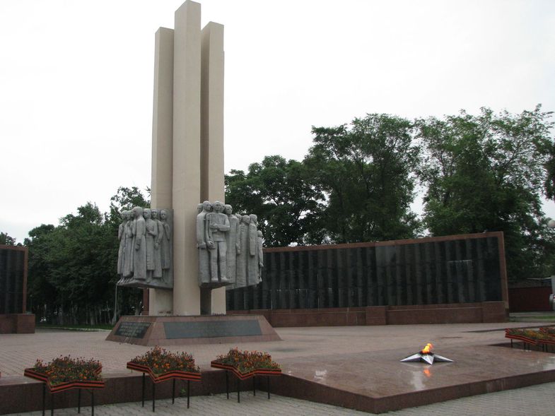 В годы ВОВ жители Уссурийска вместе с гражданами других городов страны Советов встали на защиту Родины. Здесь была сформирована стрелковая 239-я дивизия, начавшая боевой путь под Тулой. Ее бойцы вступили в неравный бой с фашистами, едва покинув вагоны эшелона на станции Узловая. Вместе с танкистами 32-й бригады уссурийцы стояли насмерть, отражая натиск механизированных колонн вермахта, рвущихся к Москве. Многие из беззаветных защитников Отечества пали в неравной схватке. Спустя 32 года после салюта Победы, в городе торжественно открыли мемориальный комплекс воинам-уссурийцам, не вернувшимся с полей сражений Великой Отечественной войны. Перед фигурной стелой с барельефами пылает факел Вечного огня – дань памяти бессмертному подвигу героев.
