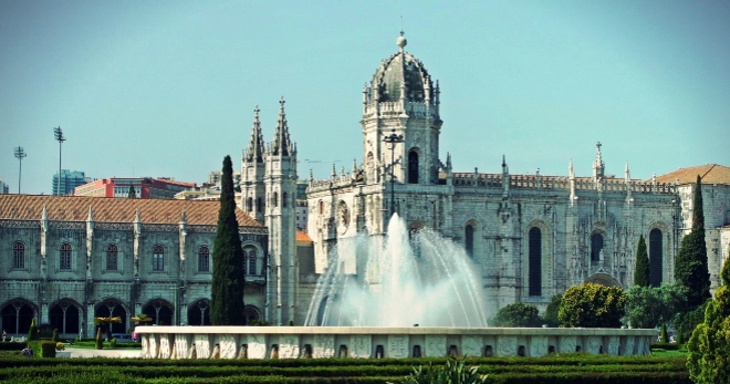 Вход в Военно-морской музей слева на фото, под двумя готическими шпилями. На другом конце справа находится монастырь Жеронимуш (фото ниже), объект Всемирного наследия ЮНЕСКО.
