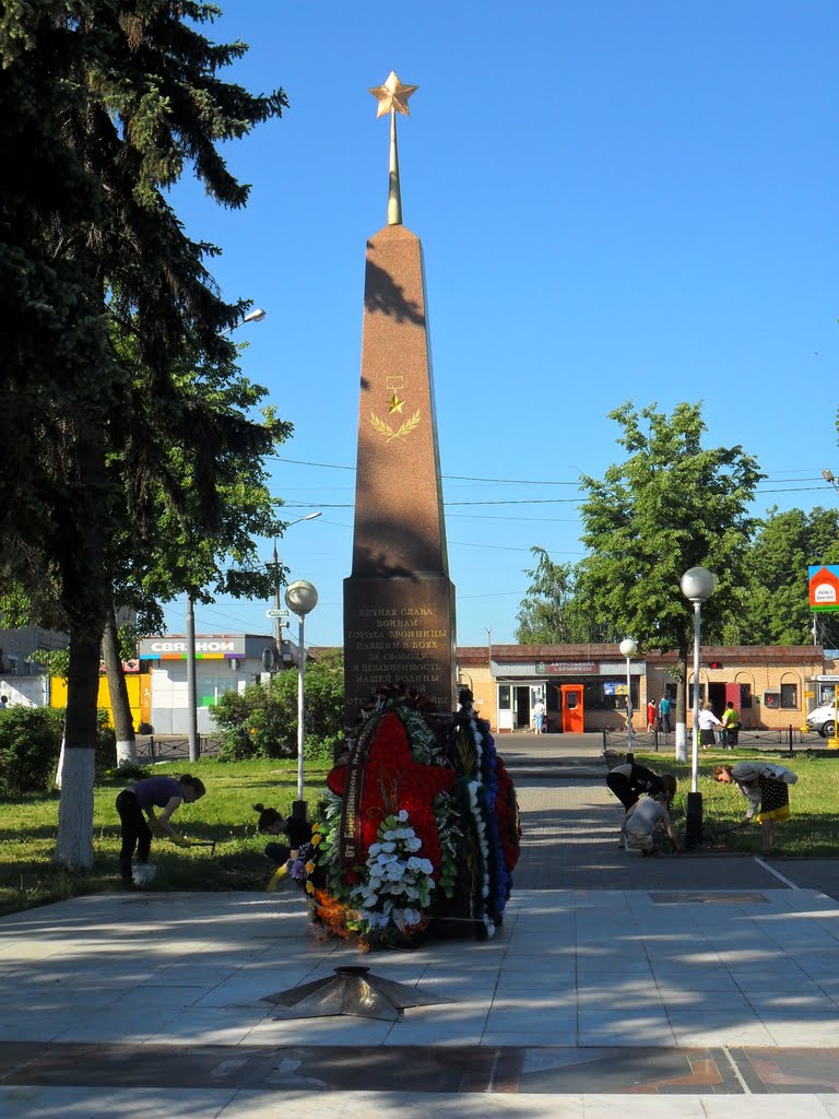 В 1965 году на площади имени Тимофеева был установлен гранитный обелиск, увенчанный шпилем с красной звездой на конце. Он посвящён памяти воинов Бронниц, которые погибли за свободу Родины в годы Великой Отечественной войны. Церемония открытия монумента состоялась 9 мая. В тот же день у его подножия был зажжён Вечный огонь, пылающий и сегодня.