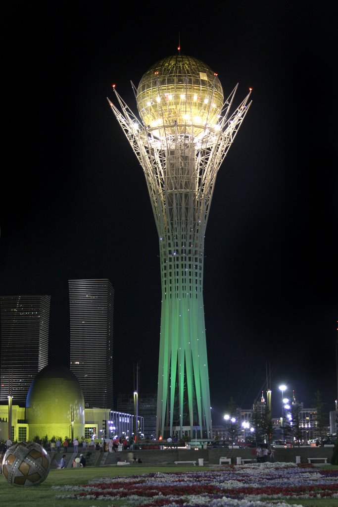 Монумент Байтерек – молодой архитектурный памятник, ему всего 12 лет. Он был построен в 2002 году по инициативе Президента как символ переноса столицы из Алматы в Астану. На высоте 97 метров находится оттиск руки Нурсултана Назарбаева, а вокруг монумента разбиты крупные парковые зоны.