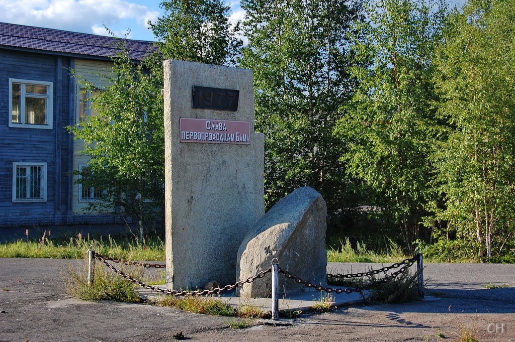 В районе Морского порта Северобайкальска на месте высадки первого десанта строителей Бурятского участка Байкало-Амурской железнодорожной магистрали установлена символическая бетонная палатка с надписью: «Слава первопроходцам БАМа!».