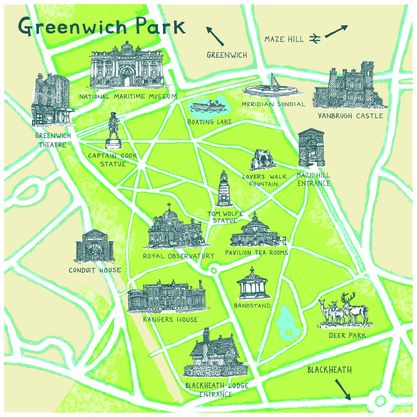 Схема расположения достопримечательностей Гринвича